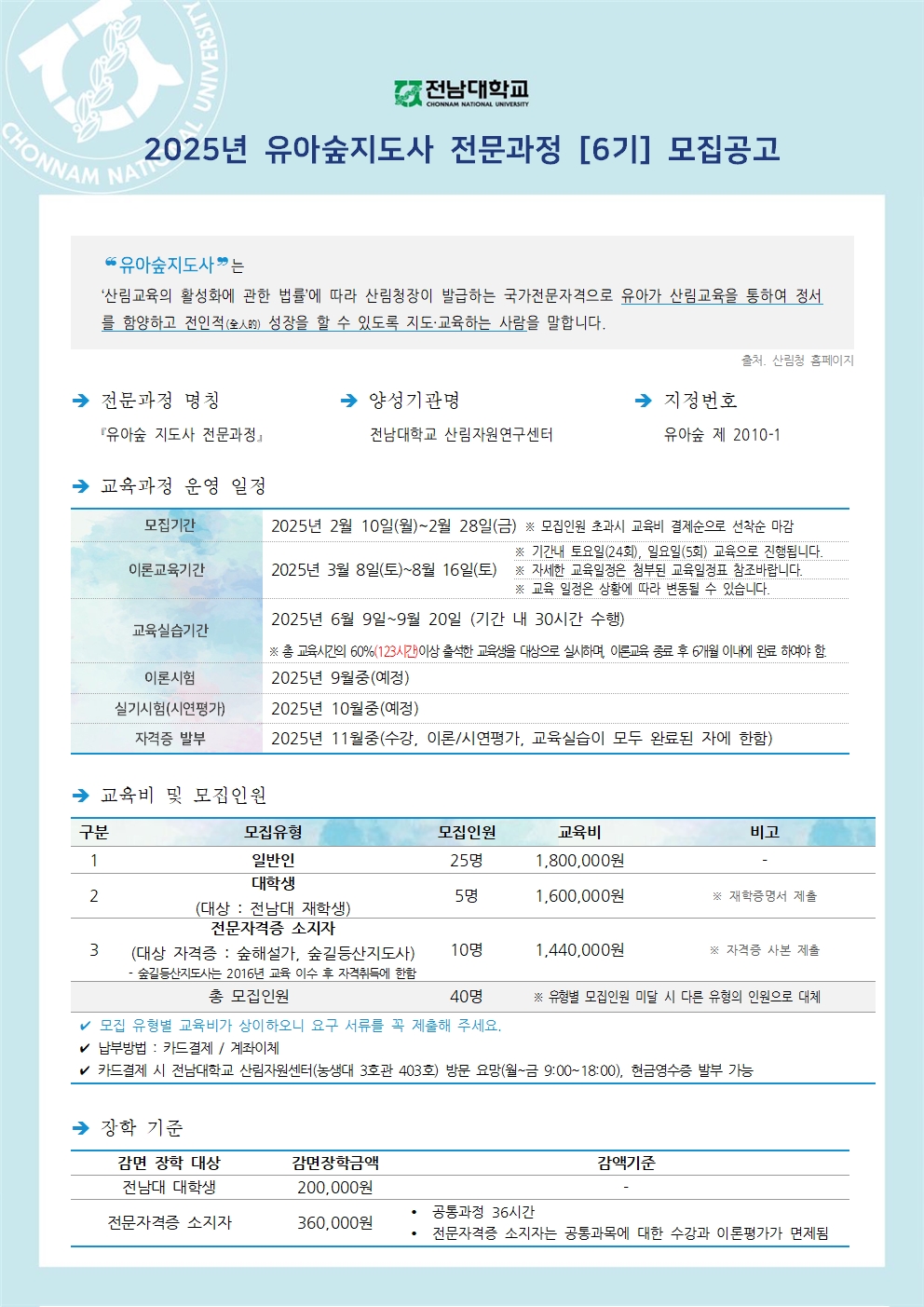| 다음글 | 2025년(제15기)-전남대-수목치료기술자 양성과정-참가자 모집 |