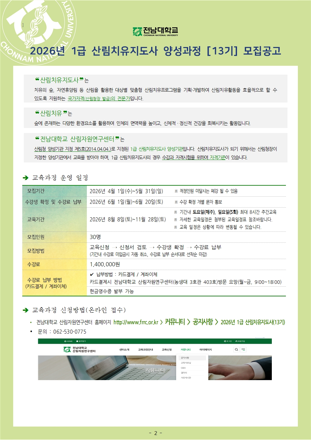 | 다음글 | ★2026년(제15기)-전남대-수목치료기술자양성과정-학습자 모집★ |